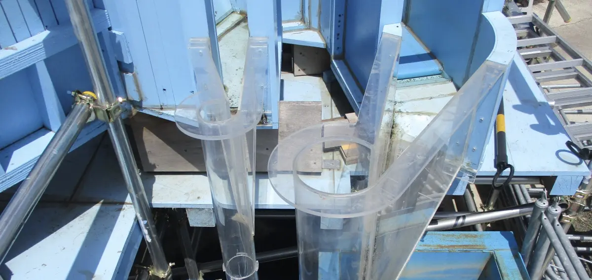 この水理実験模型は、アクリル製でケーソンなどの人工的な構造物の模型です。